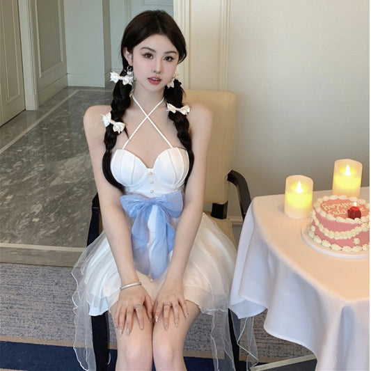 Bow Mesh Strap A-Line Dress PL53458