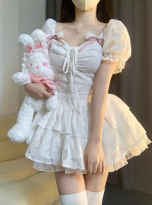 Puff Sleeve Ruffle Collar White Shirt PL53082