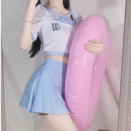 Bear Print Swimsuit Suit Top + Short Skirt PL51771