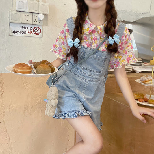 Cute peach blossom T-shirt + white pleated skirt PL51574