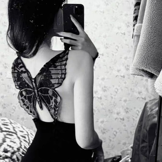 Embroidered butterfly strap dress PL52071