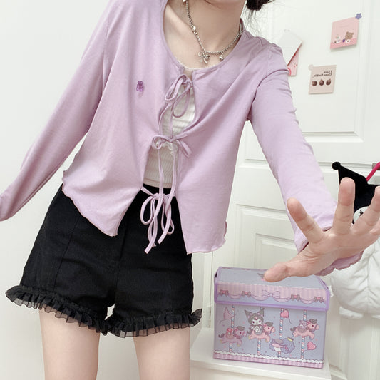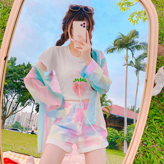 High-waisted tie-dye wide-leg denim shorts PL51692