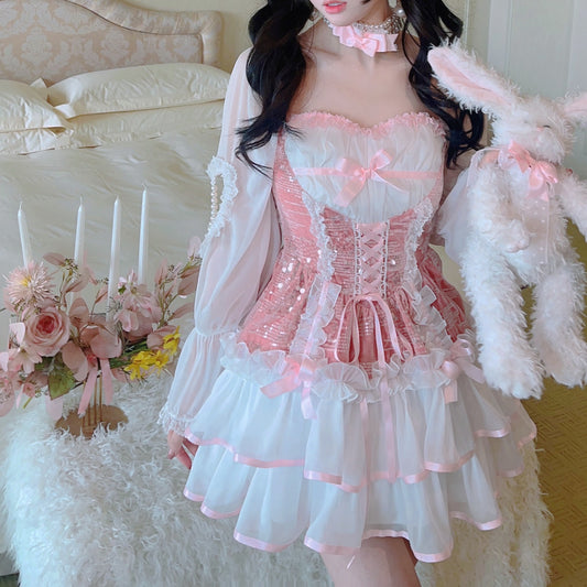 PINK CROSS KNOT LOLITA DRESS PL53398