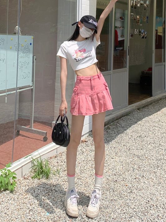 Love short-sleeved T-shirt + bowknot blue cake skirt PL53377