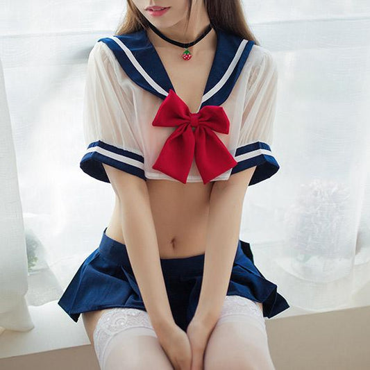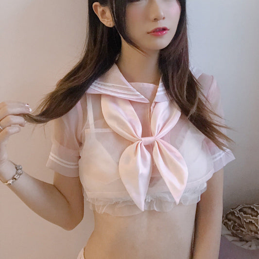 PINK TRANSPARENT SHEER SAILOR SCHOOL UNIFORM LINGERIE PL53590