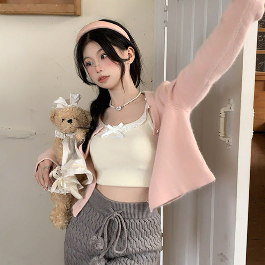 Bowknot Navy Collar Puff Sleeve Top + High Waist Lace Shorts PL53411