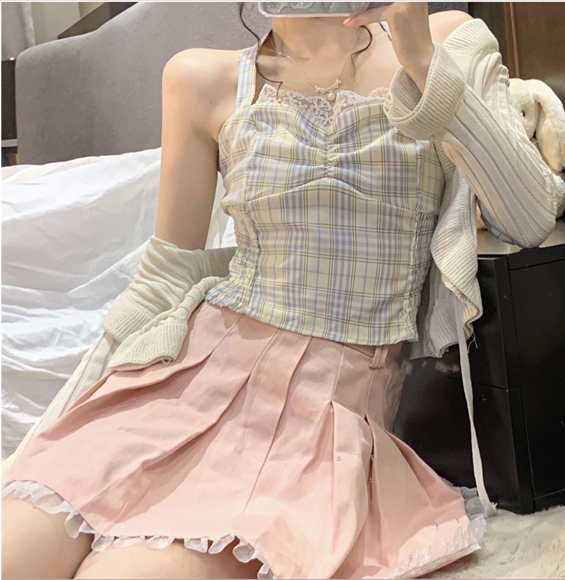 apricot camisole+ pleated skirt+ knitted jacket PL52221