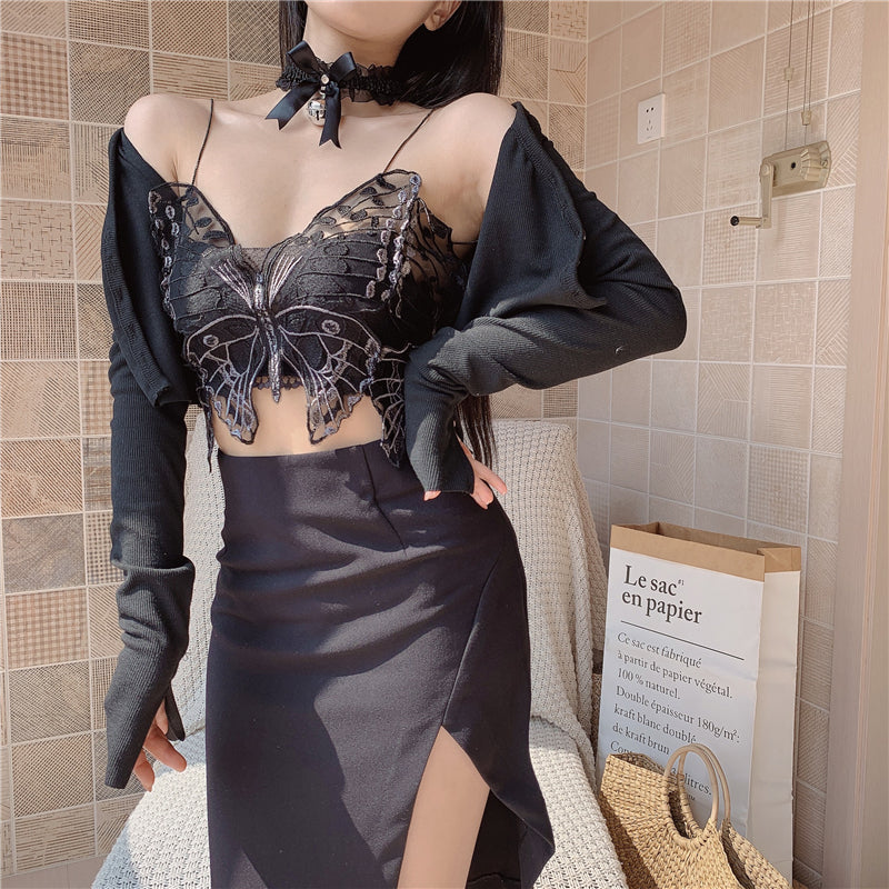 Black embroidered butterfly suit PL52074