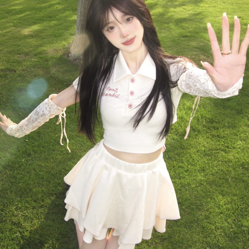 Bowknot polo collar top + tutu skirt PL53363