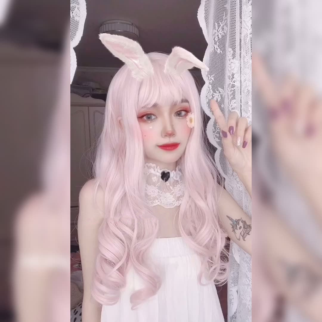 Cherry Blossom Pink Long Curly Wig PL52437
