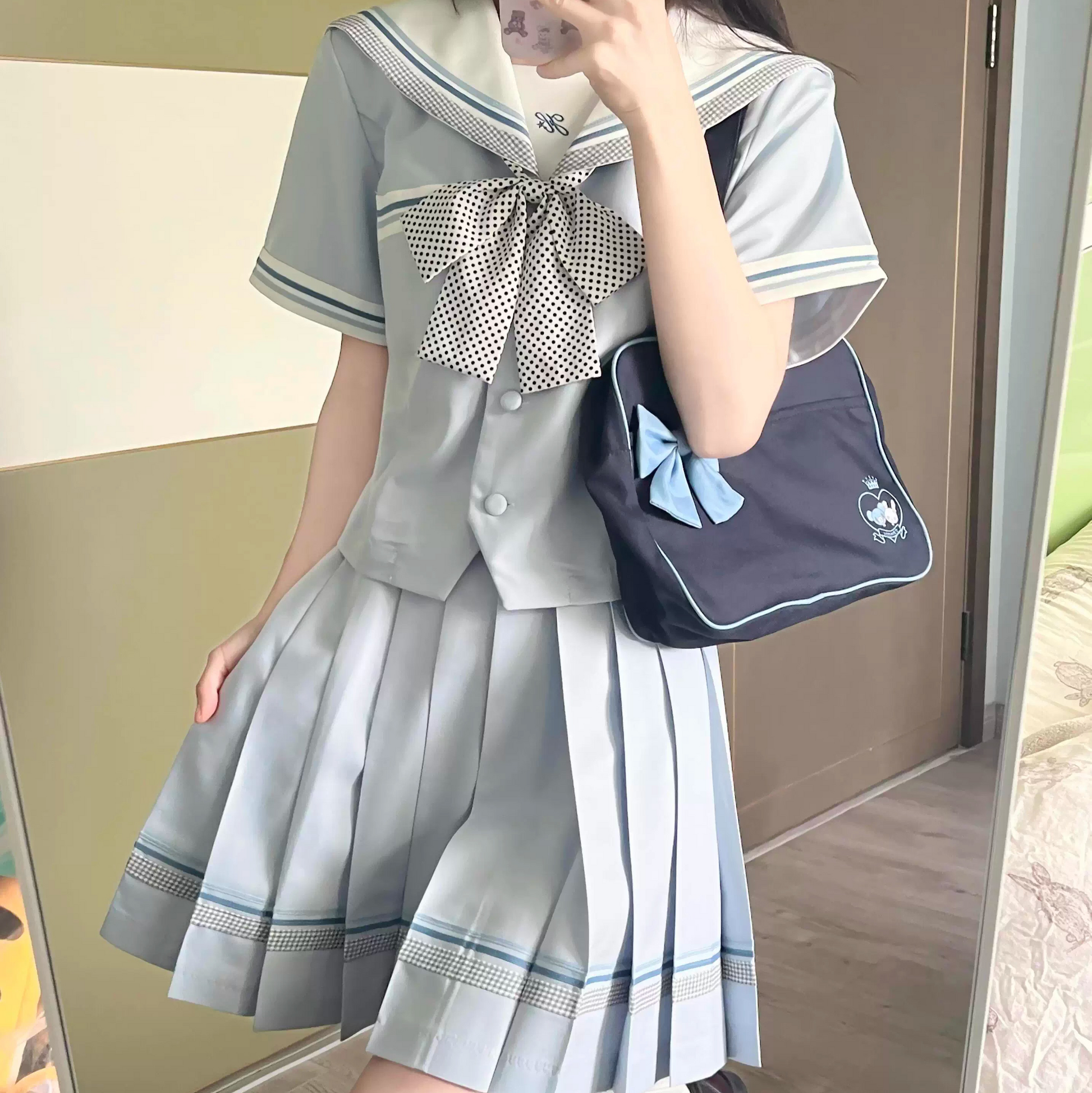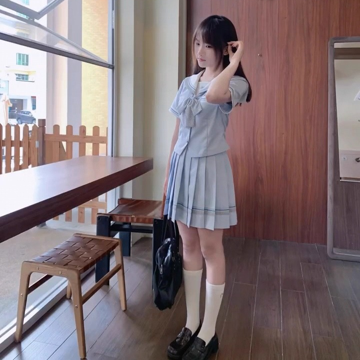 Includes: short-sleeved top + pleated skirt 42cm + bow tie