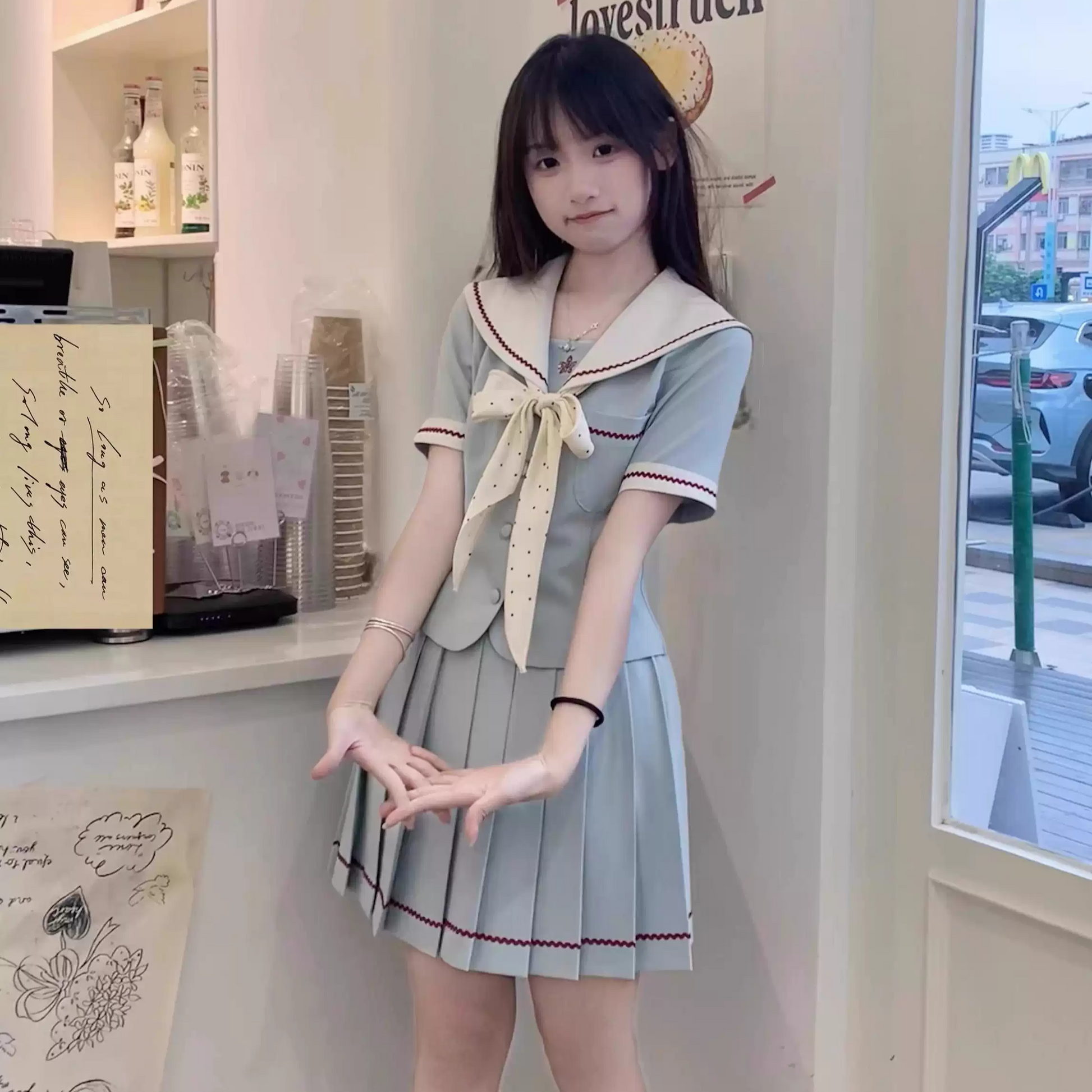 Includes: short-sleeved top + short skirt 42cm + bow tie