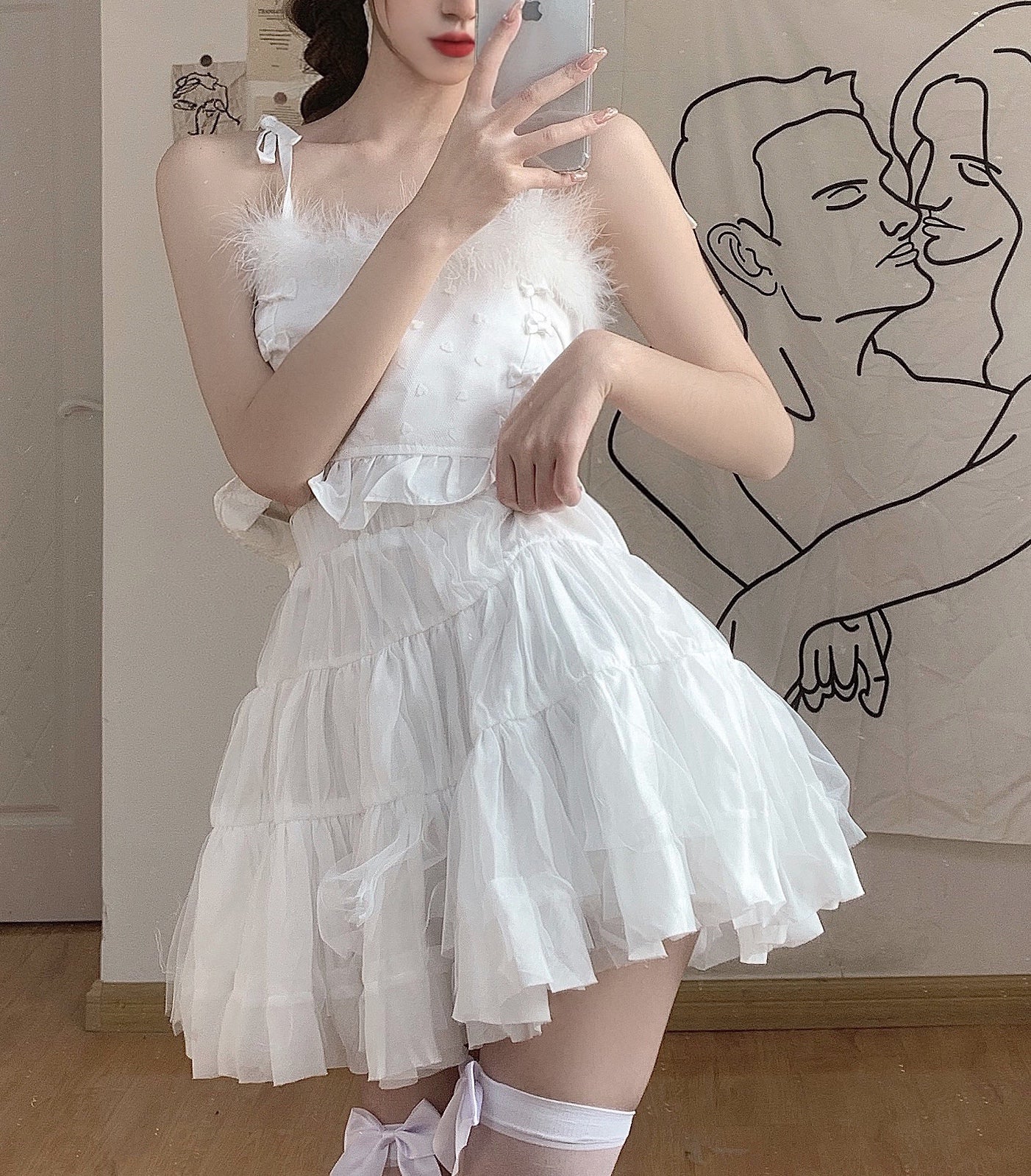 Cute Bowknot Sling Top + Short Skirt PL51396