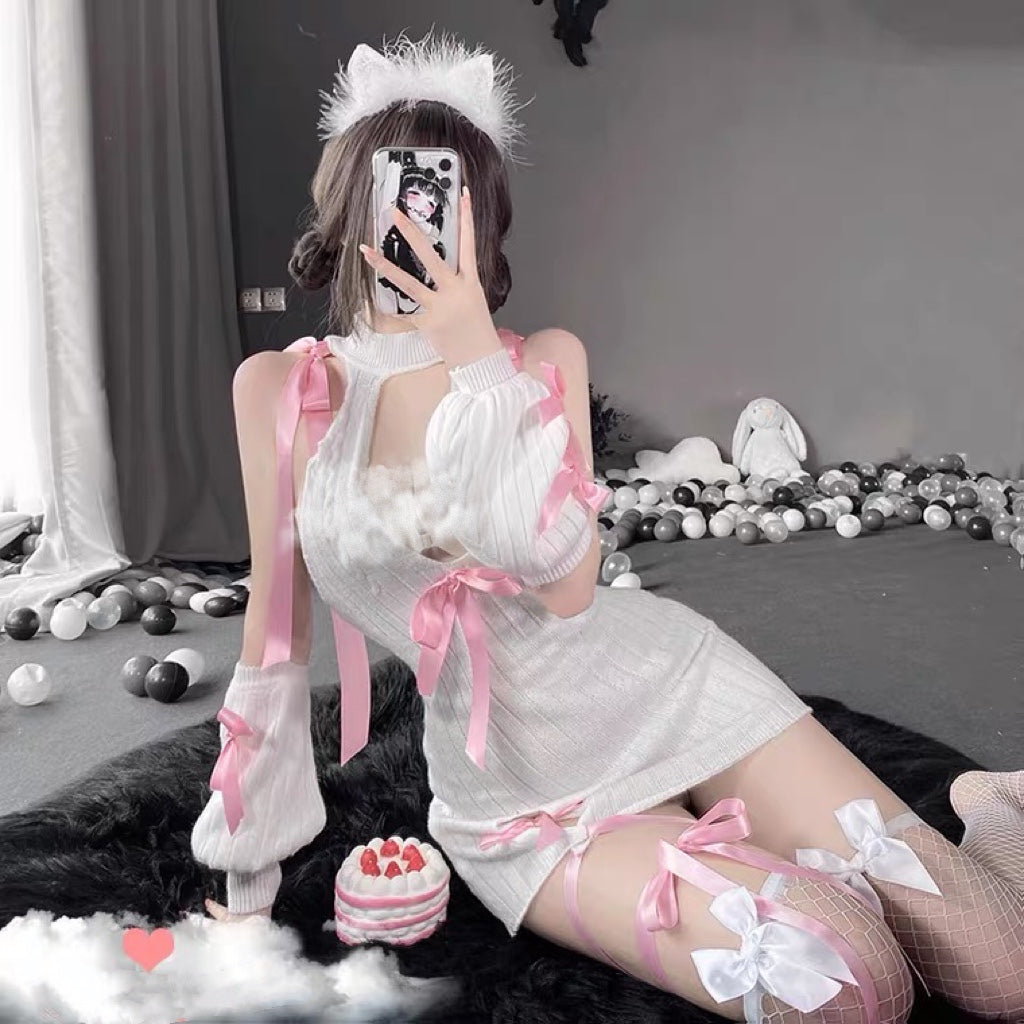 Soft knitted pink bow dress PL52184