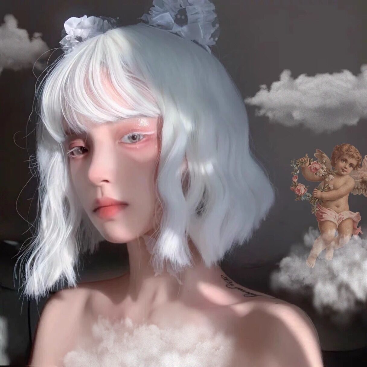 Harajuku black and white short curly hair PL51031