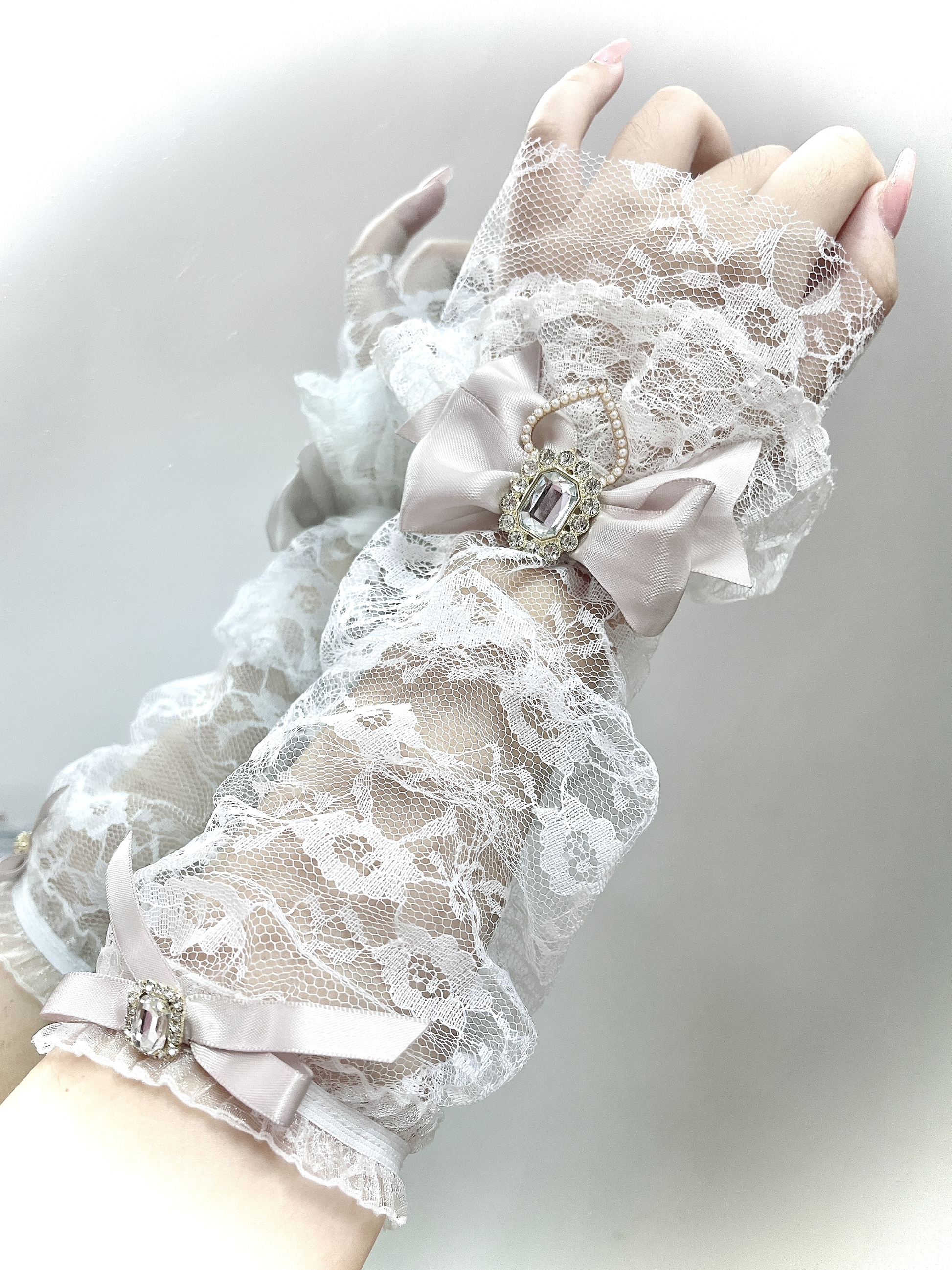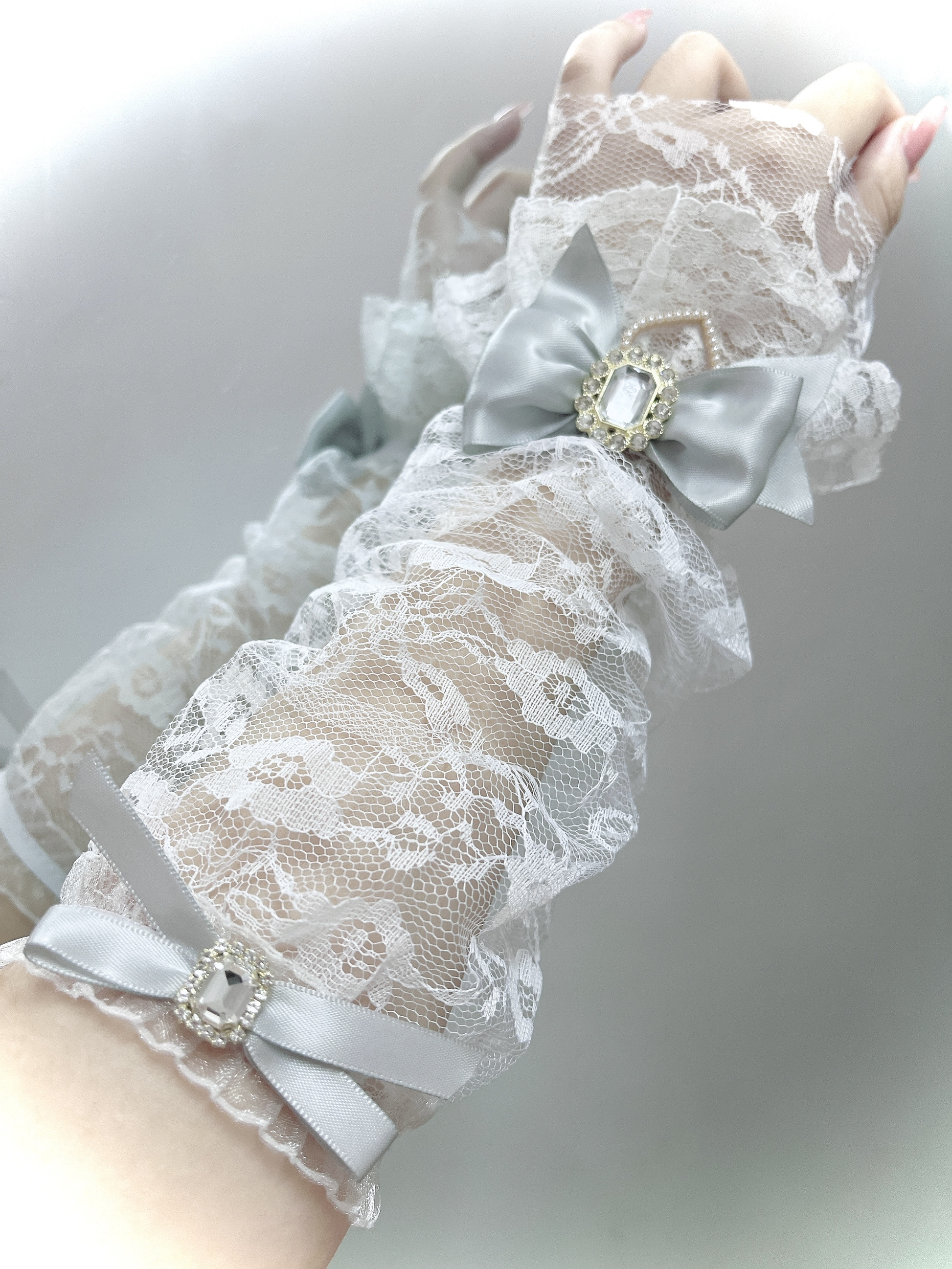Lolita Bow Rhinestone Heart Lace Sleeves PA20190