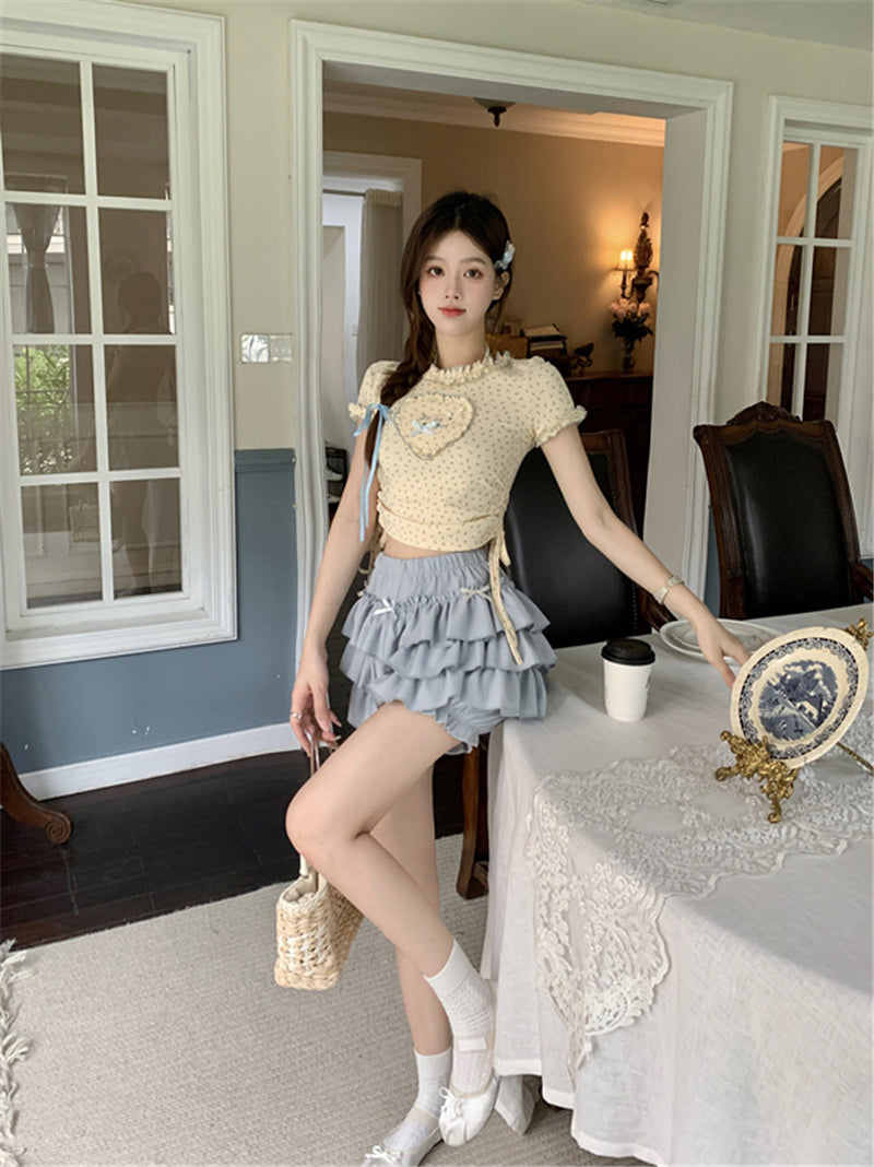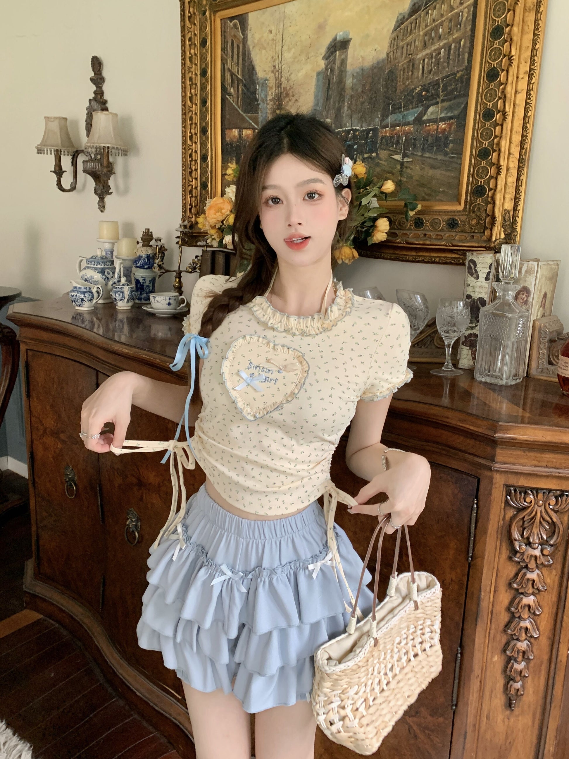 Love short-sleeved T-shirt + bowknot blue cake skirt PL53377