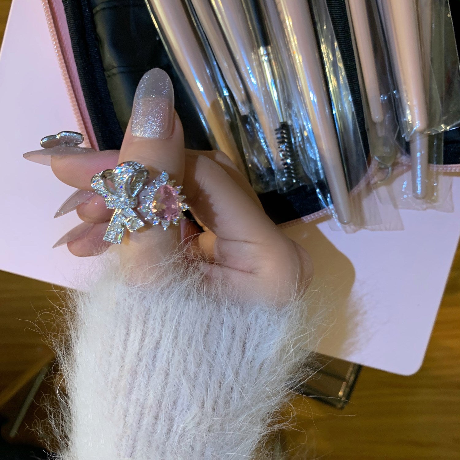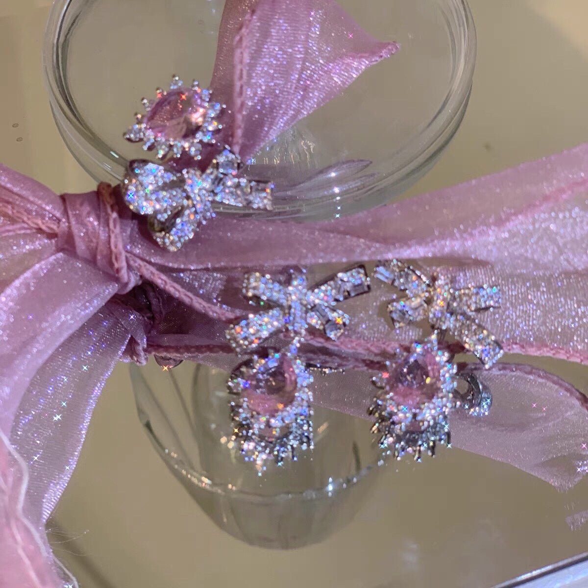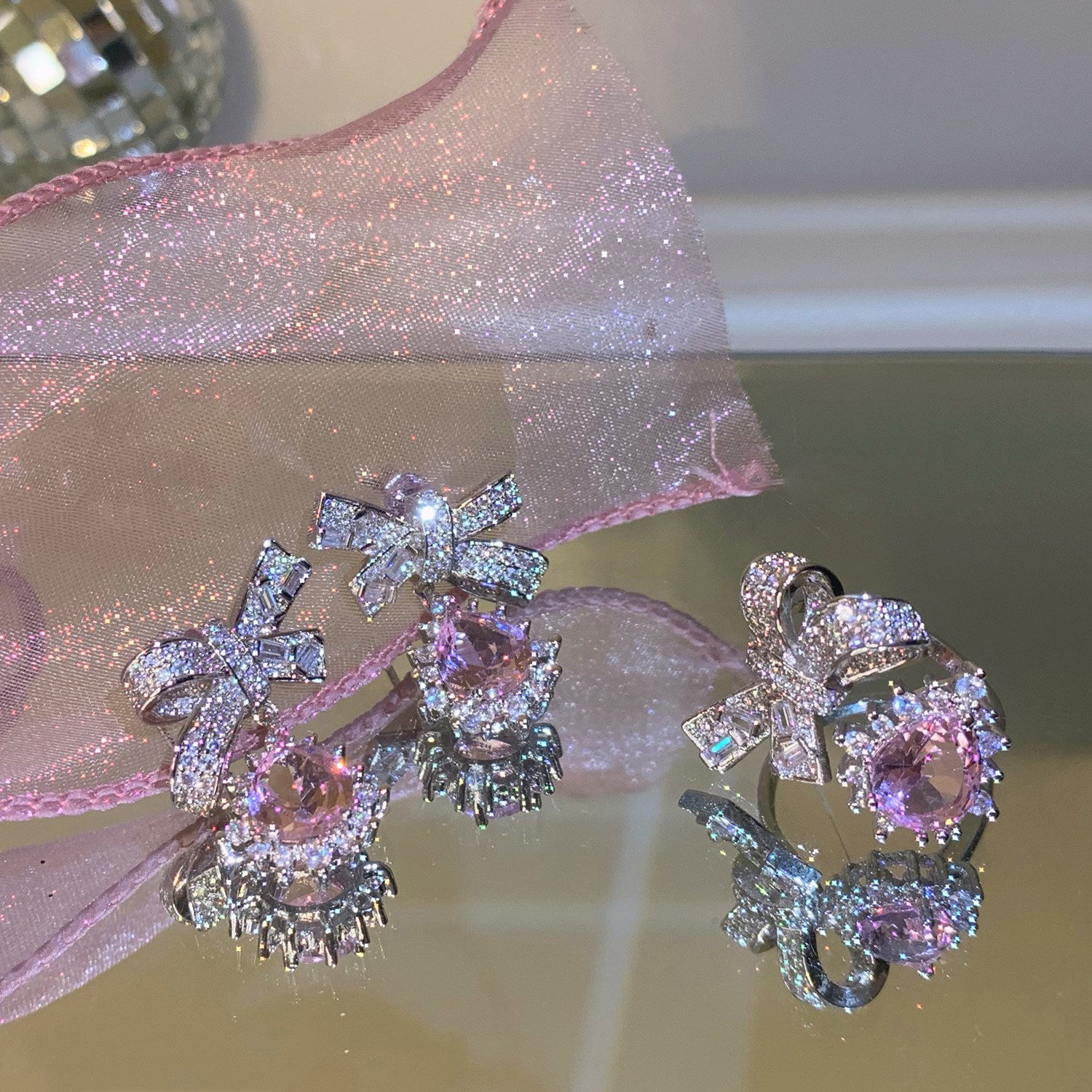 Lovely diamond bow ring + earrings PL51742