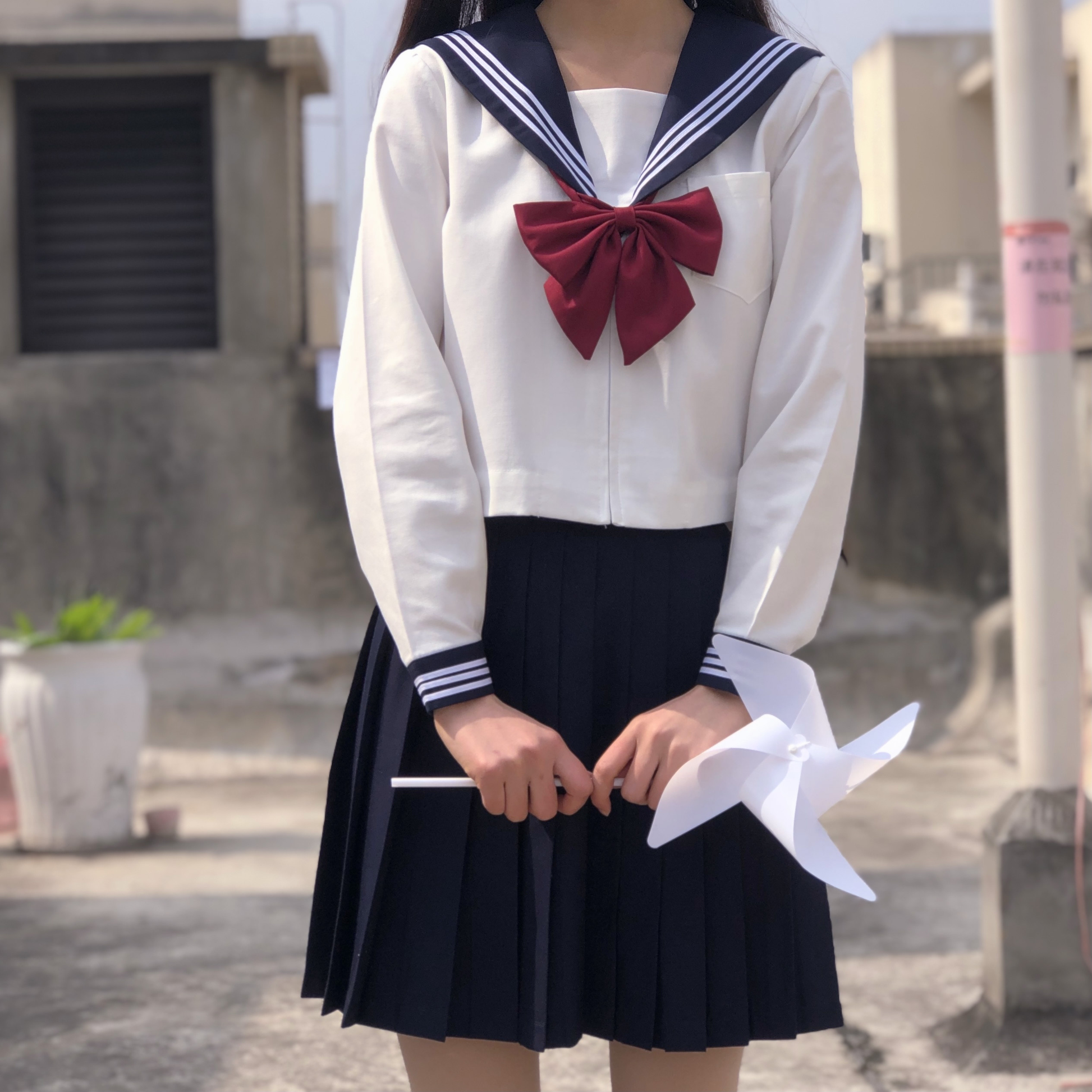 set 6:Long-sleeved shirt + midi skirt (65cm) + bow tie + hanger