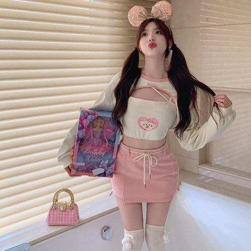 Color classification: Pink 3-piece set,top 2-piece set, short skirt