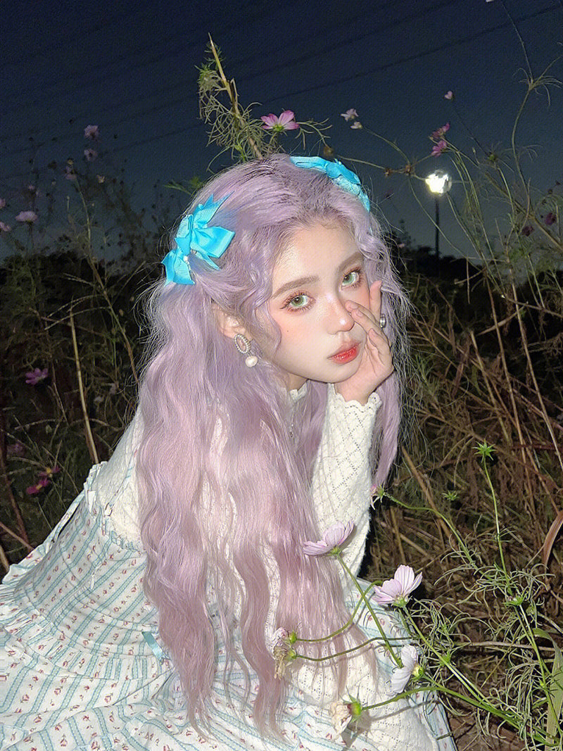 Romantic pink and purple wool curly wig PL53211
