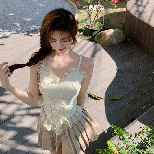 apricot camisole+ pleated skirt+ knitted jacket PL52221