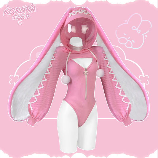 Pink Bunny Hoodie Bodysuit Lingerie KO72