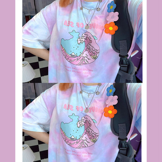 Embroidered colorblock short-sleeved T-shirt PL20398