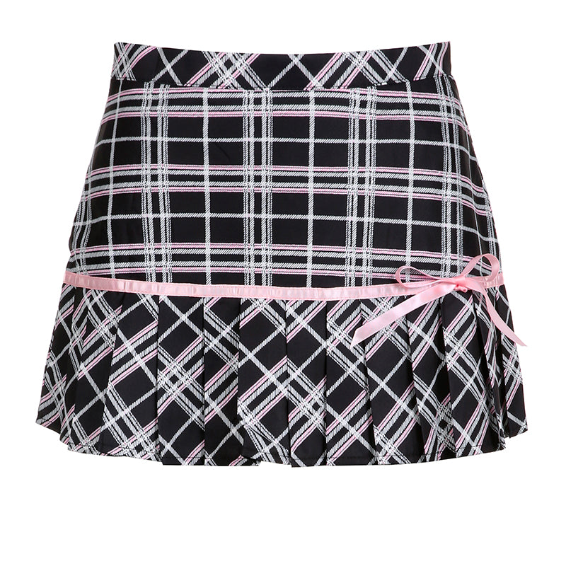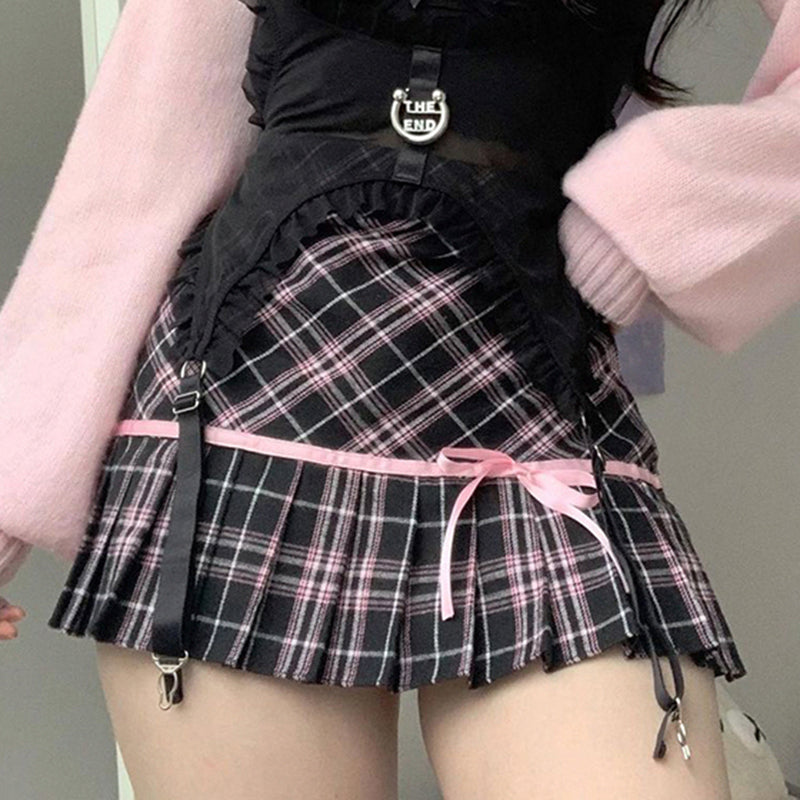 Black and Red Plaid Color Block Pleated Skirt PL53434