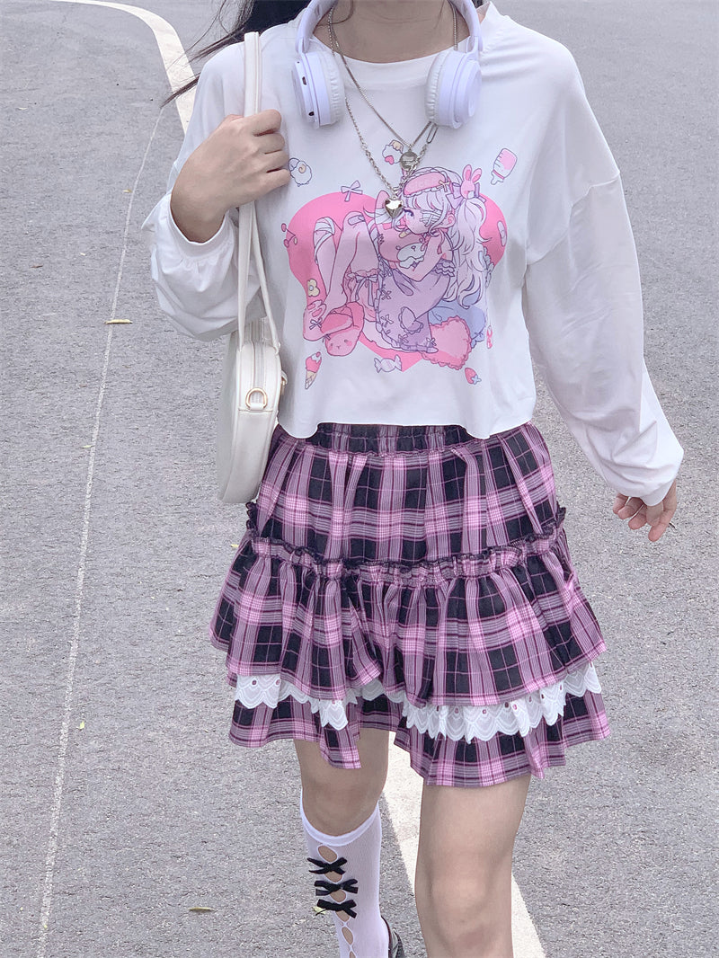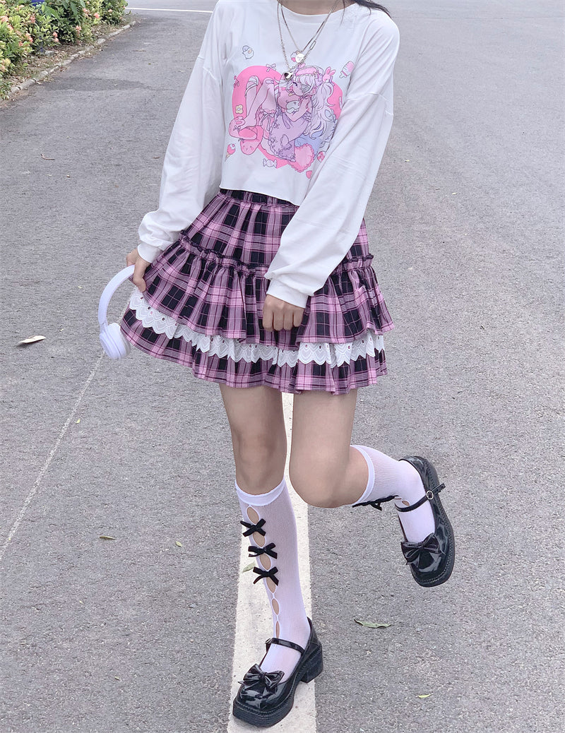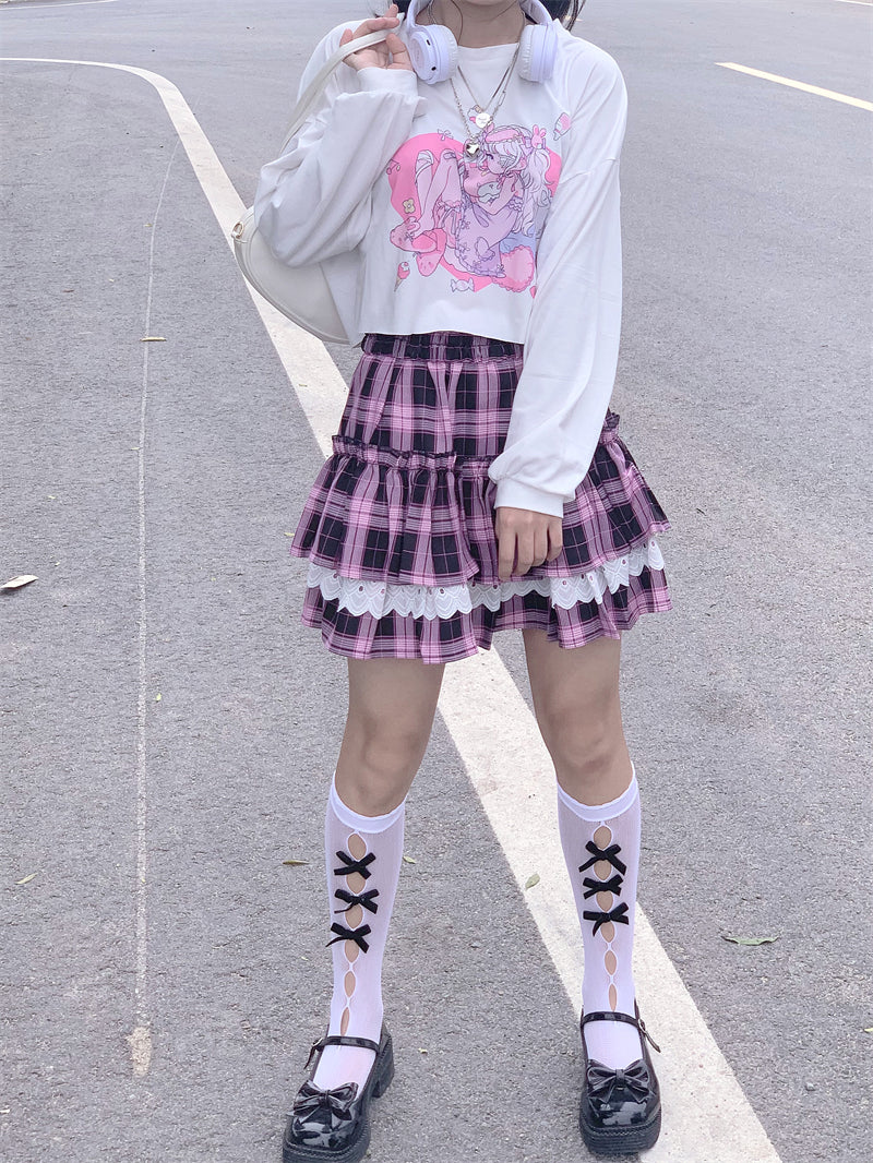 Black pink check pleated skirt PL52121