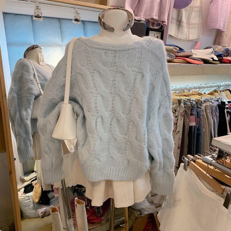 Blue Sweater Length 50cm Bust 132cm Shoulder and Sleeve Length 67cm