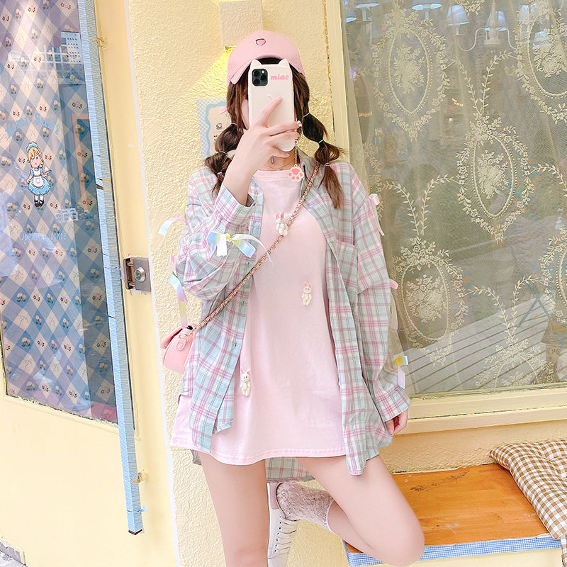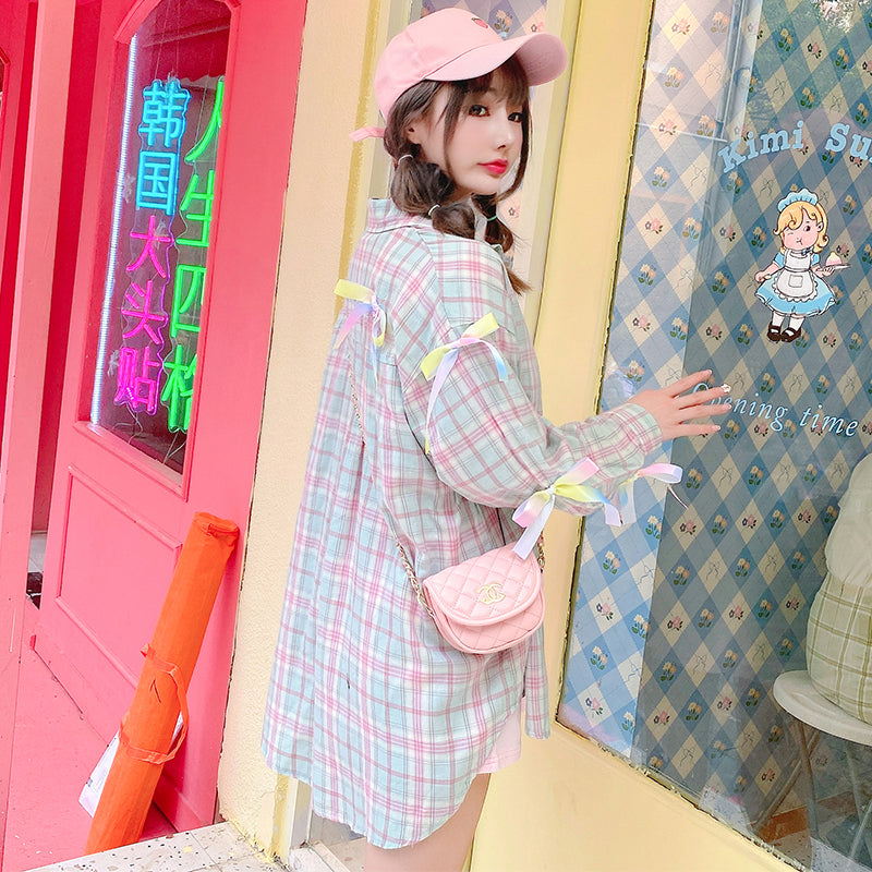Bow-knot plaid mid-length shirt PL51687