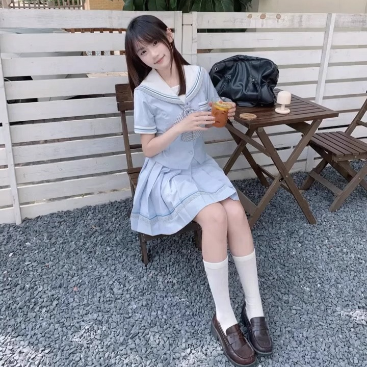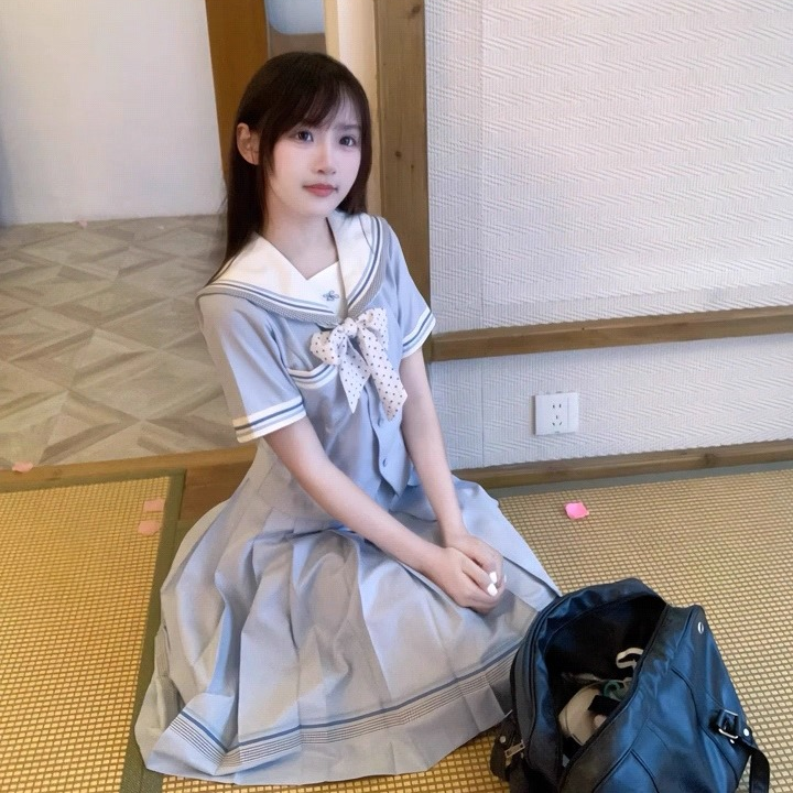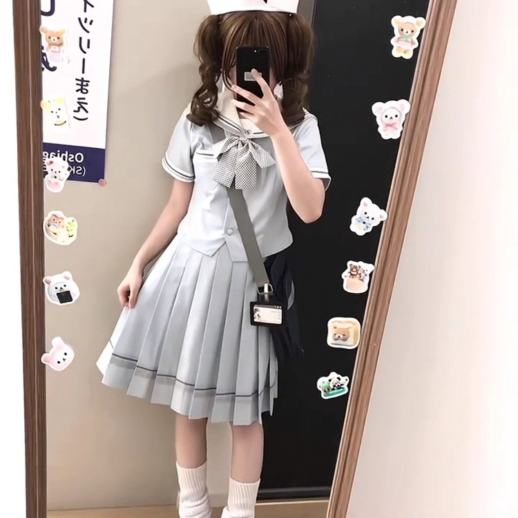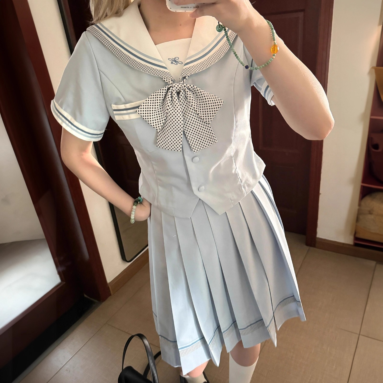 Includes: short-sleeved top + pleated skirt 42cm + bow tie