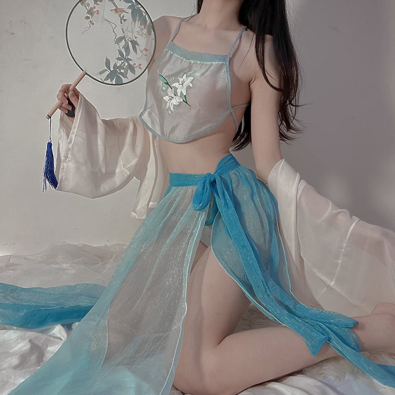 Color; Pink [including robe _ apron _ gauze skirt _ T pants],Light blue [including outer robe _ apron _ gauze skirt _ T pants].