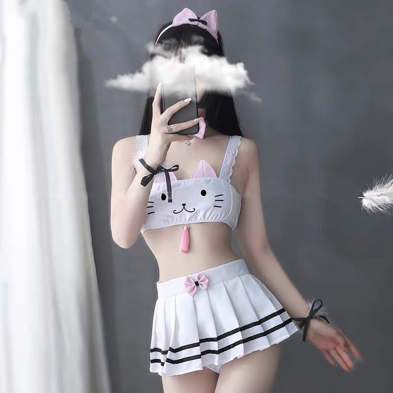 Contains: headband + neck ring + bracelet + tube top + short skirt + panties