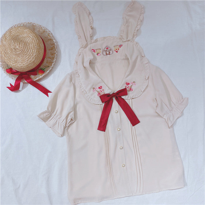 Color; pink skirt, blue skirt, pink top, khaki top, white top
