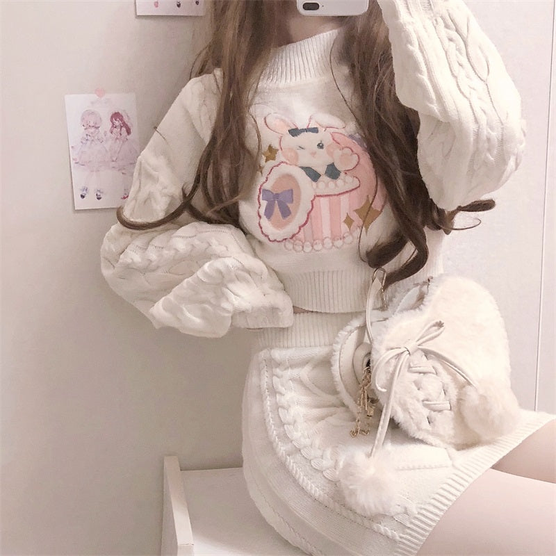 Cute Knitted two-piece sweater + skirt PL52837