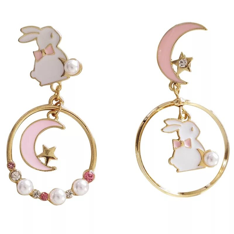 Cute Moon Rabbit Ear Studs PL50390