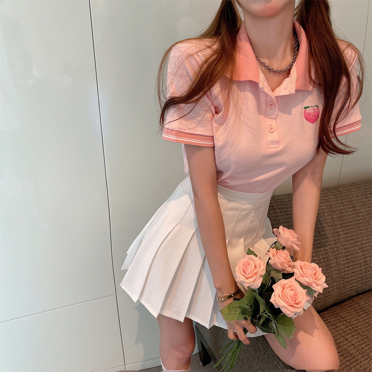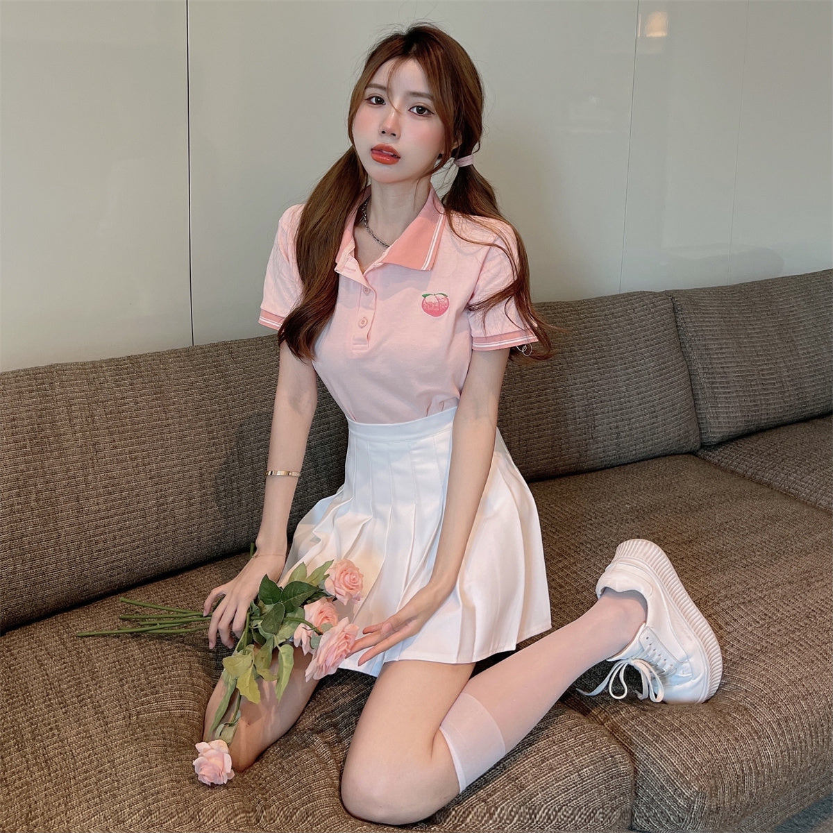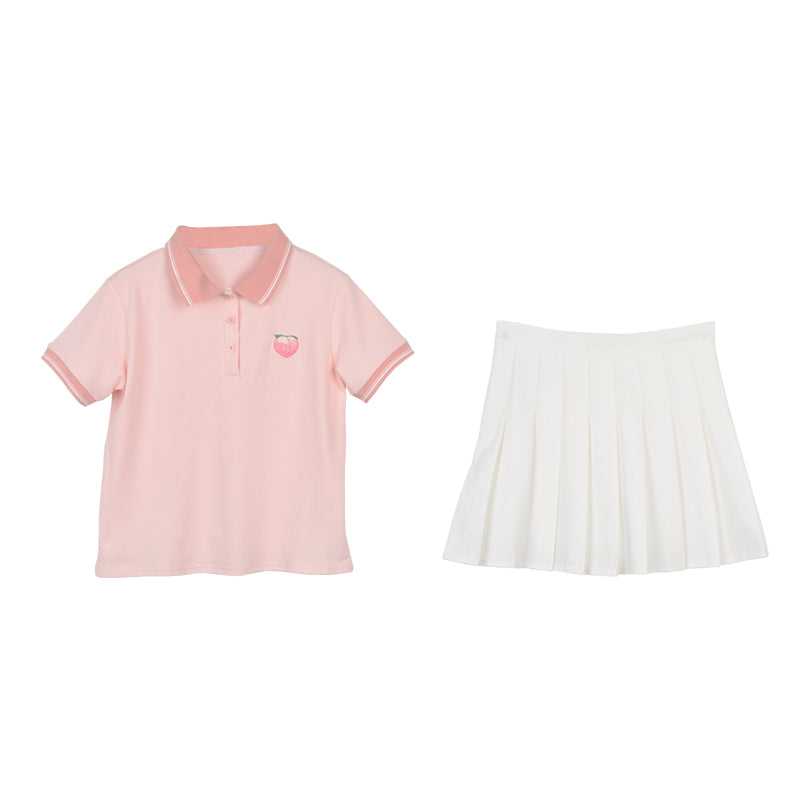 Cute peach blossom T-shirt + white pleated skirt PL51574