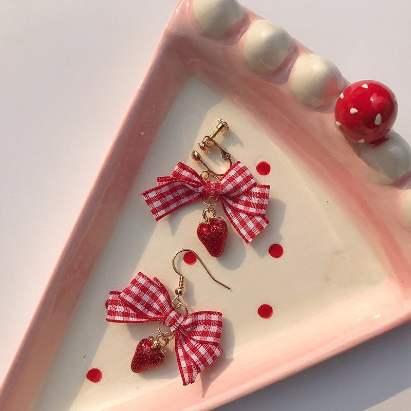 Cute strawberry earrings ear clips PL50823