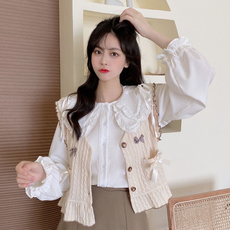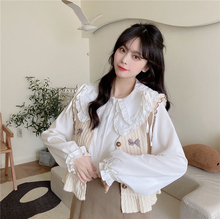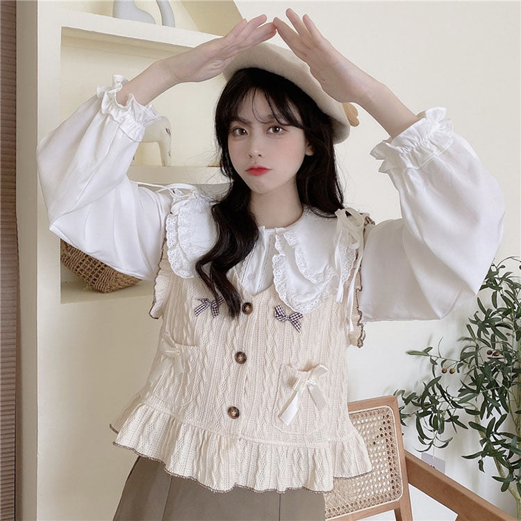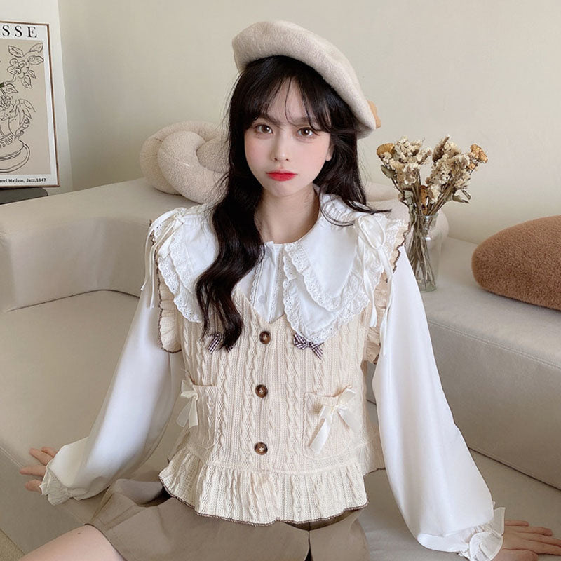 Doll Collar Shirt Vest Two-Piece Set PL52968