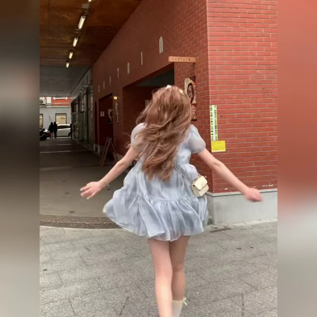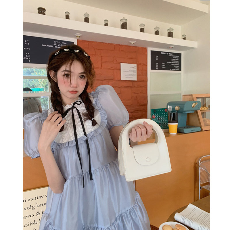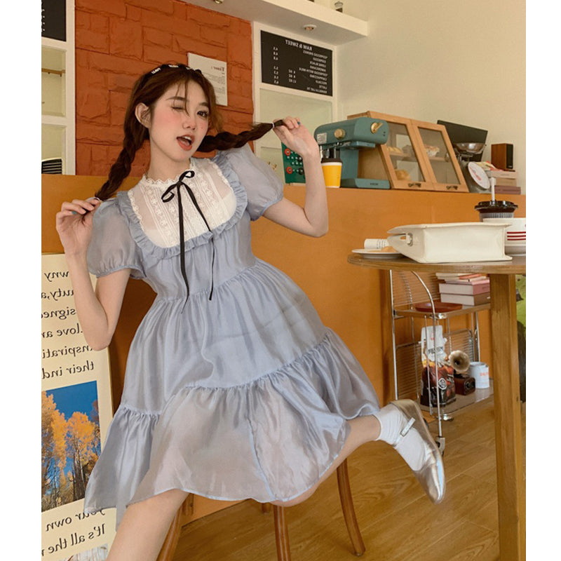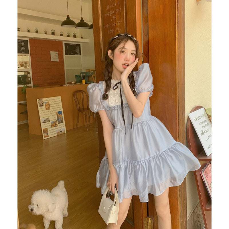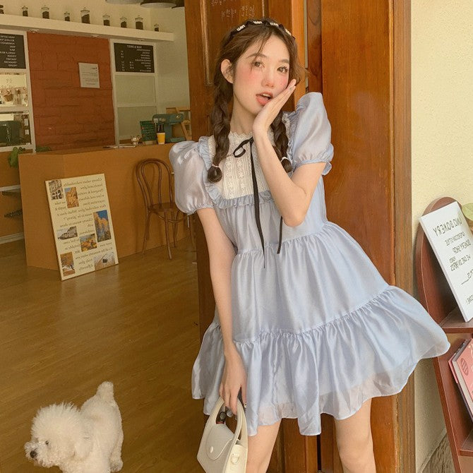 French Round Neck Puff Sleeve Babydoll Dress PL53508