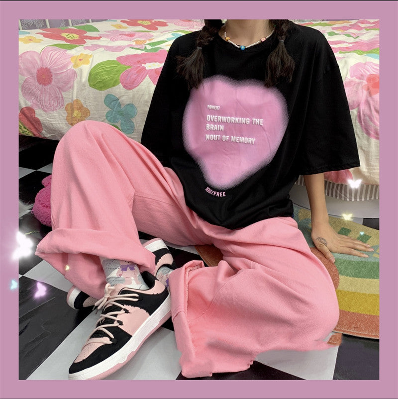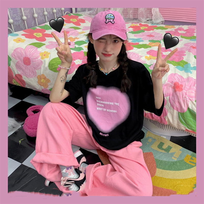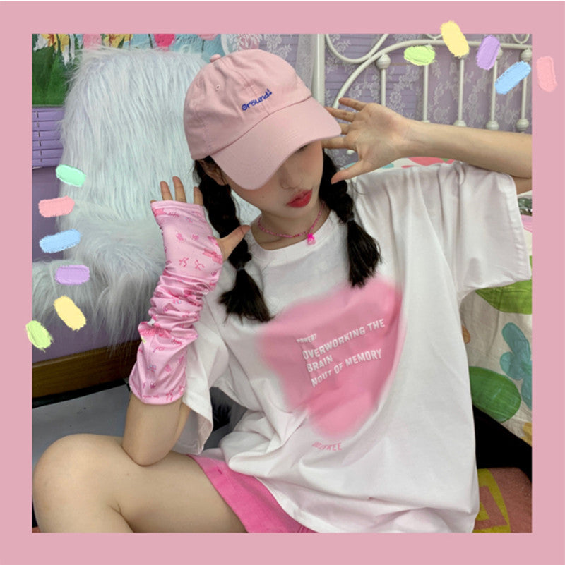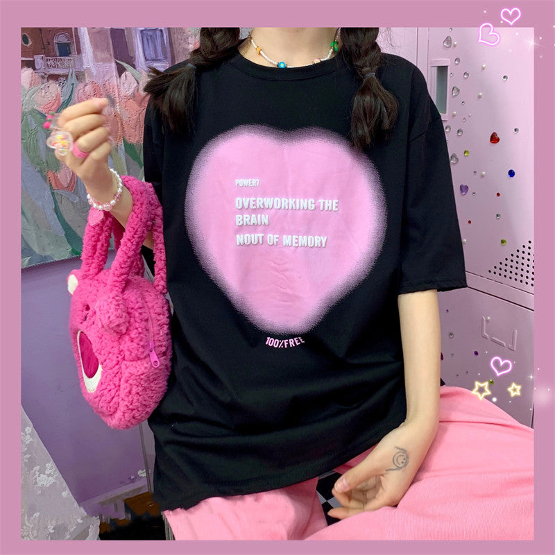 Gradient Heart Letter Short Sleeve PL52265