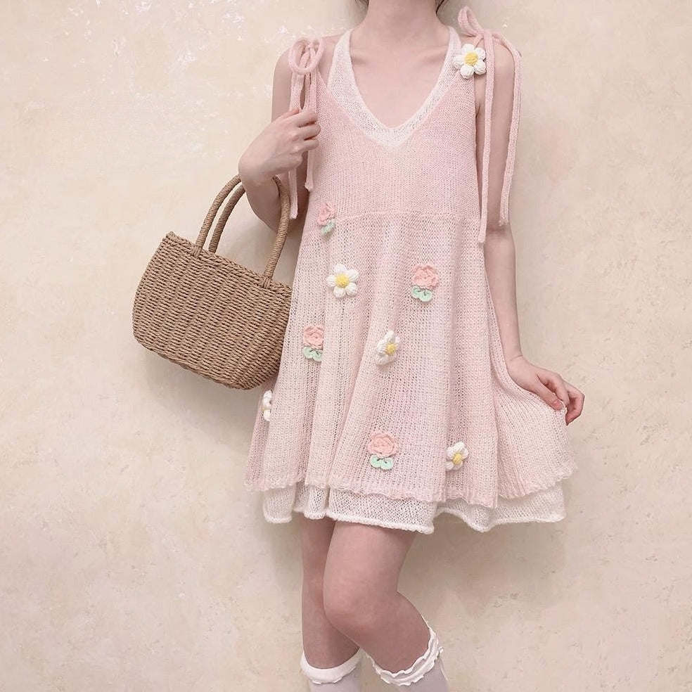 Hand-Layered Tie-Knit Slip Dress PL53557