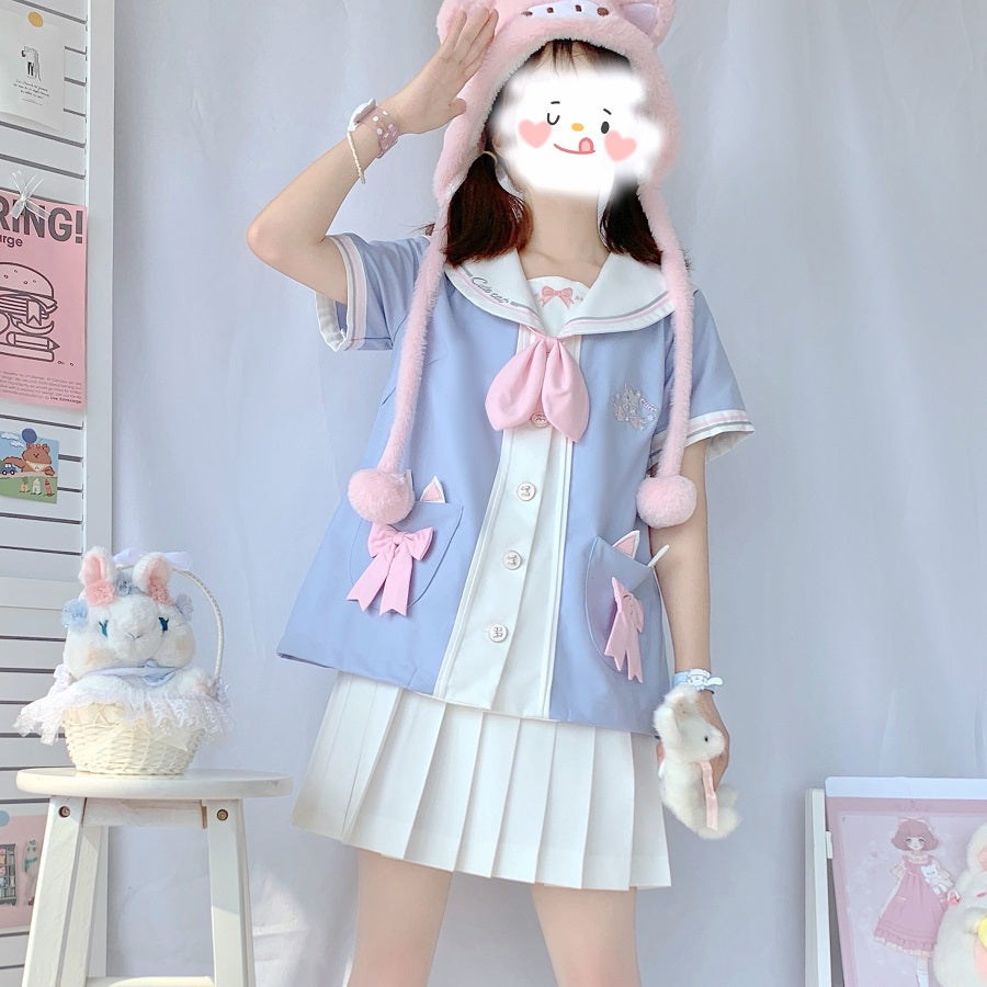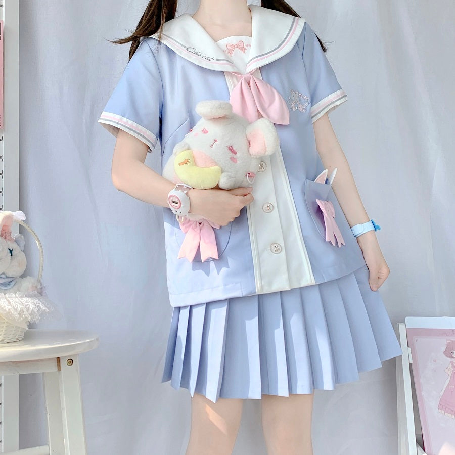 Color: Long sleeve + (blue skirt) + bag, long sleeve + (white skirt) + bag, long sleeve + (pink skirt) + bag, short sleeve + (blue skirt) + bag, short sleeve + ( White skirt) + bag, short sleeve + (pink skirt) + bag,