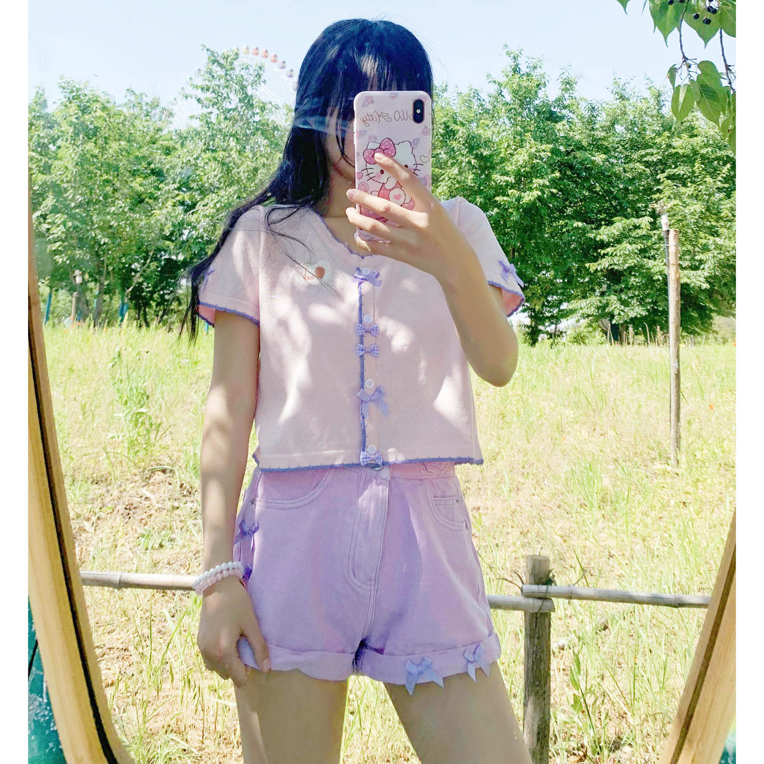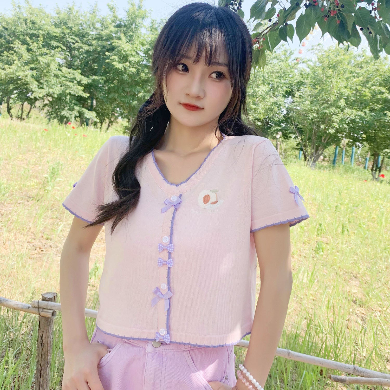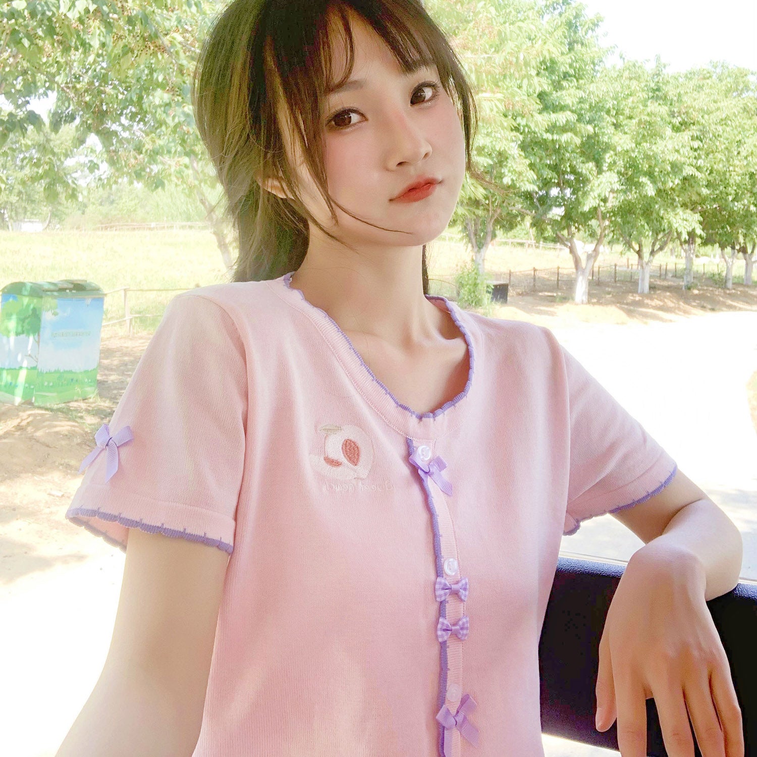 Knitted bow short-sleeved top PL51703