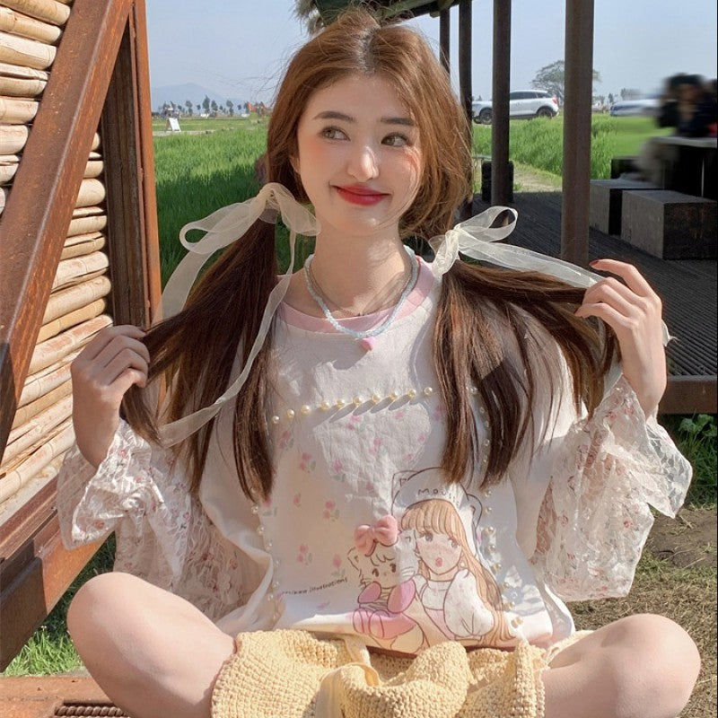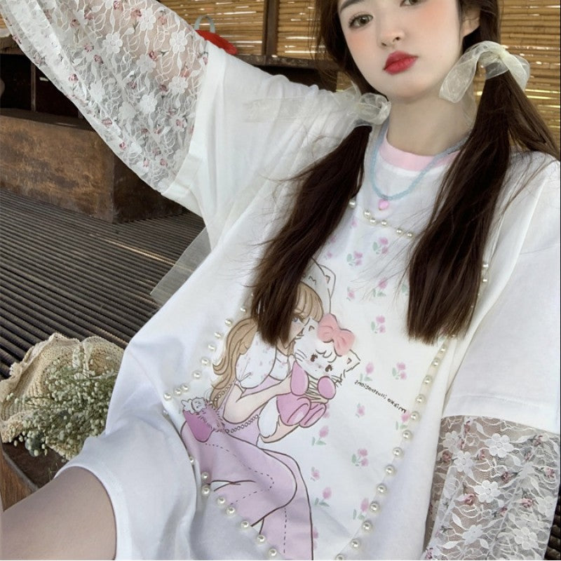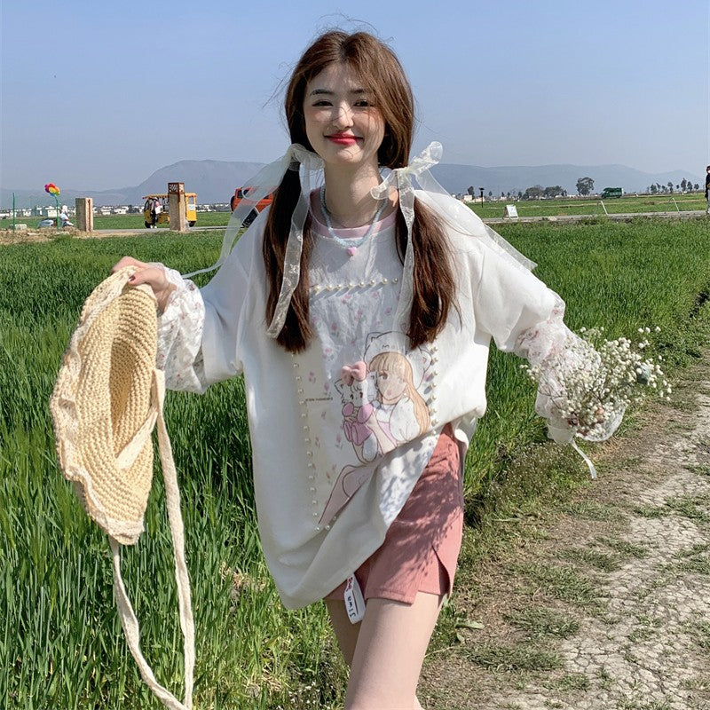 Lace Bow Long Sleeve T-Shirt PL53085