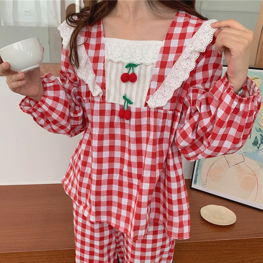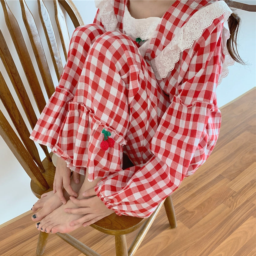 Lace Plaid Pajama Set PL21077