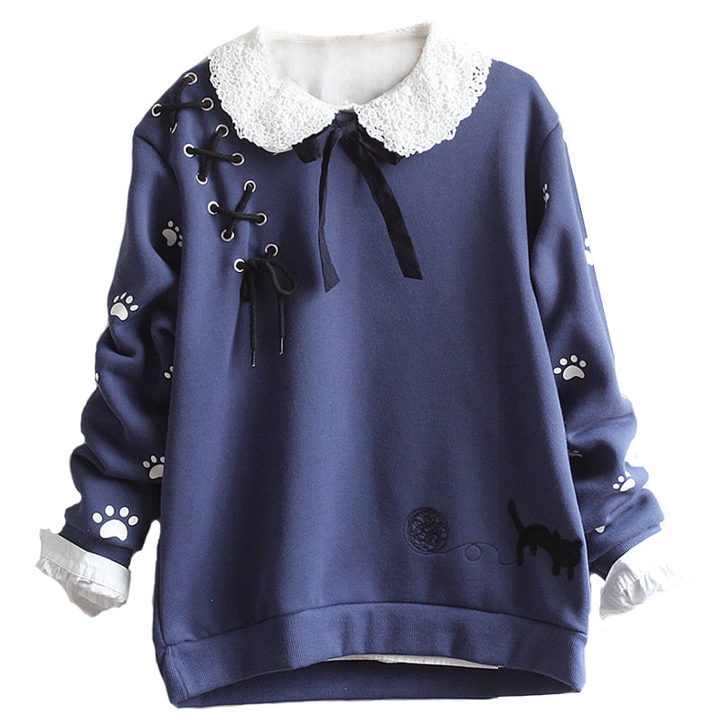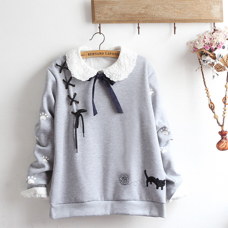 Lace-up cat loose plus velvet sweater + shirt PL20373
