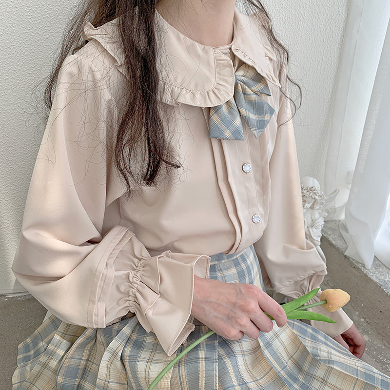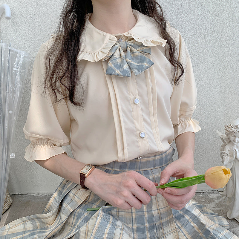 Color: white short sleeve, apricot short sleeve, white long sleeve, apricot long sleeve